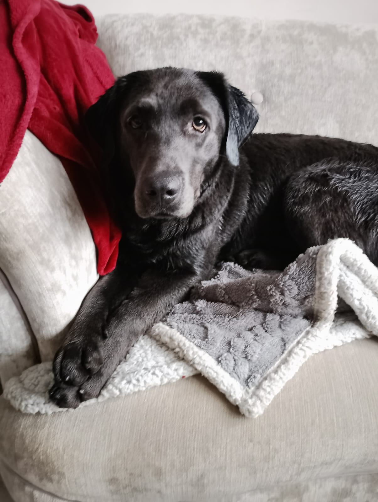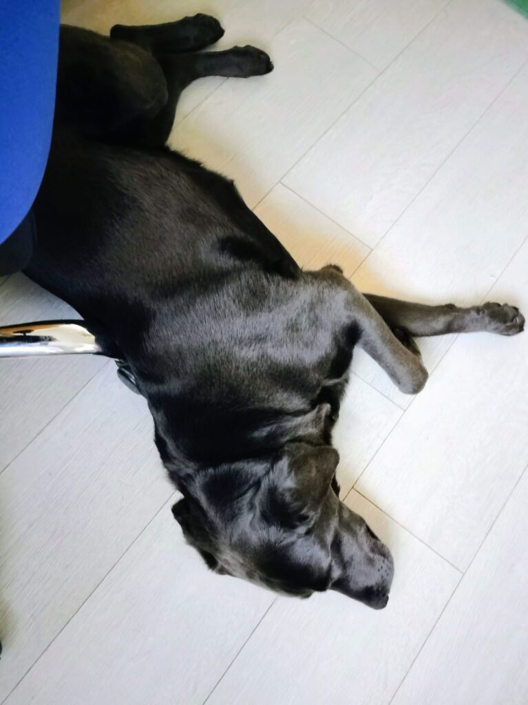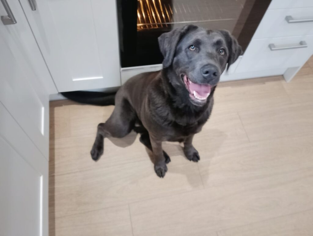 Out and about, she is comfortable around horses and is unbothered by other dogs while walking. True to her Labrador nature, she can be a little inquisitive, so adopters should be mindful to keep bins and worktops clear.