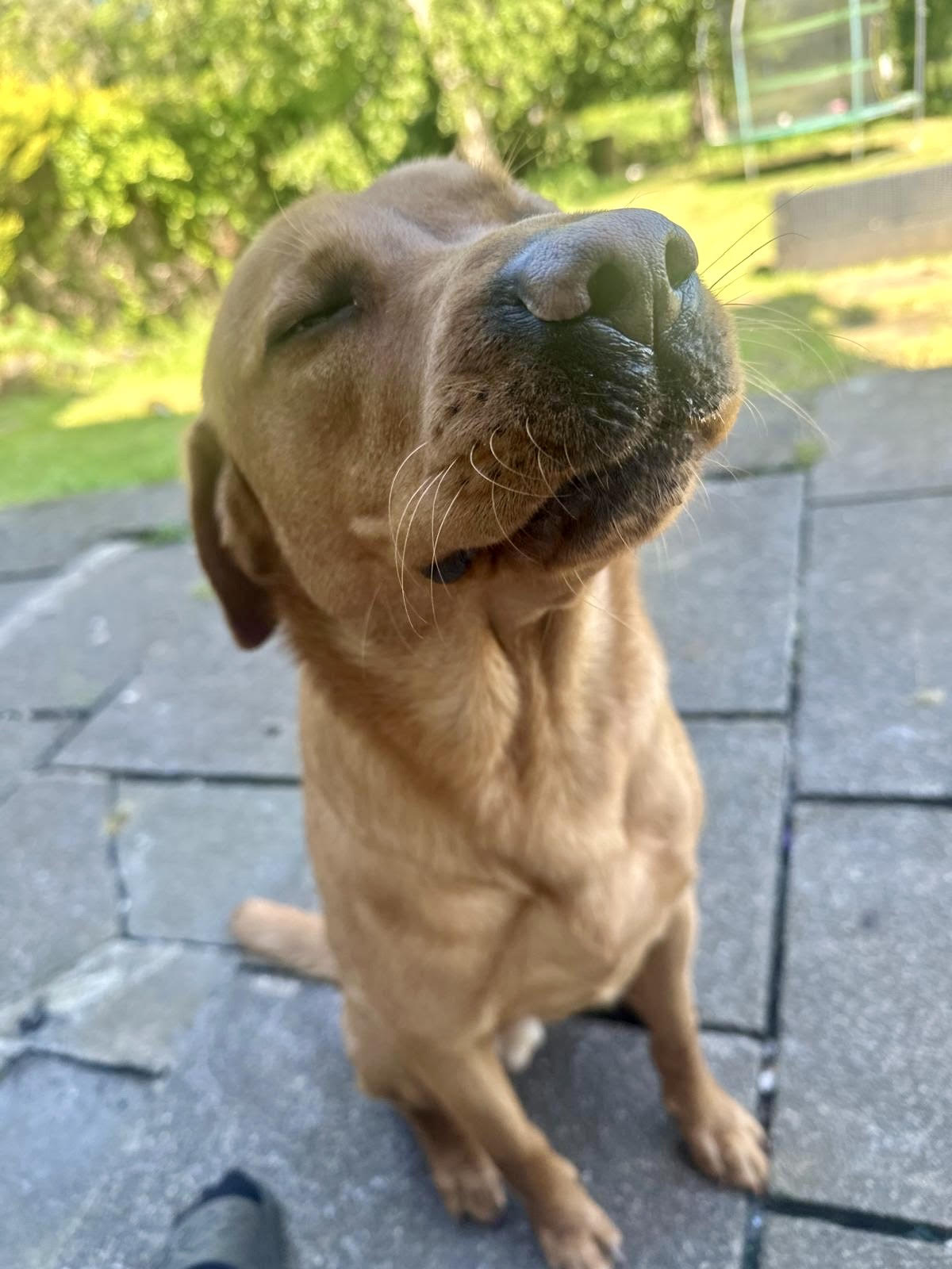 He is very well trained and knows a wide range of commands, including sit, stay, down, wait, leave, heel, and he has excellent off-lead recall — except when he spots another dog. At these moments, he may bark out of excitement as he wants to play, not due to aggression. Once he meets other dogs, he interacts well, although recalling him during these encounters can be challenging.