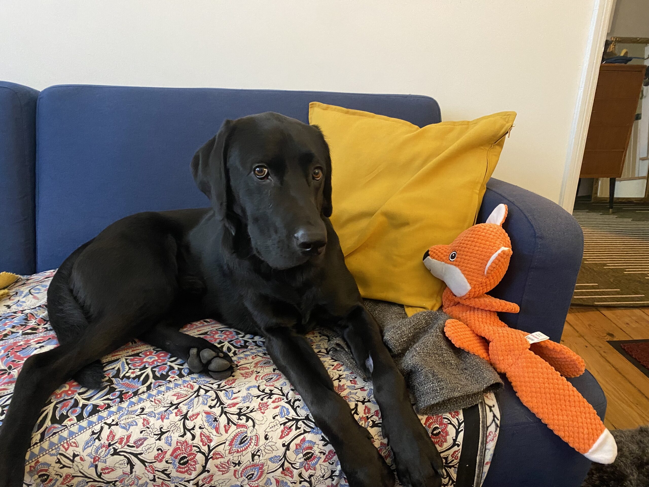 He already knows his basic commands and walks well on a harness, although he is currently on restricted exercise. As a young Labrador, he is naturally energetic and enthusiastic, so potential adopters should be aware that the enforced rest following surgery may lead to some frustration, and he will need guidance, patience, and mental stimulation during this time.