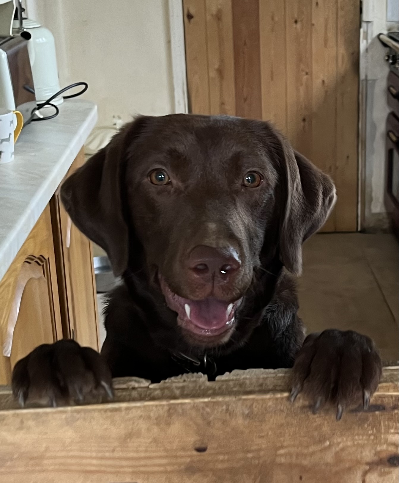 This young lively 2 year old chocolate bitch is looking for her new forever home.